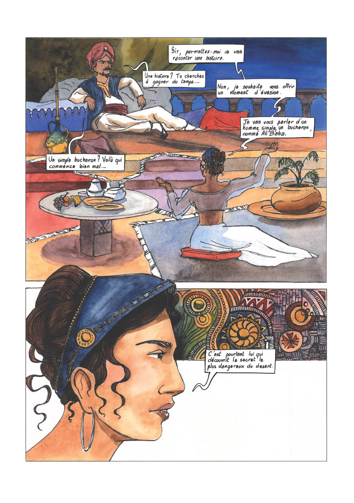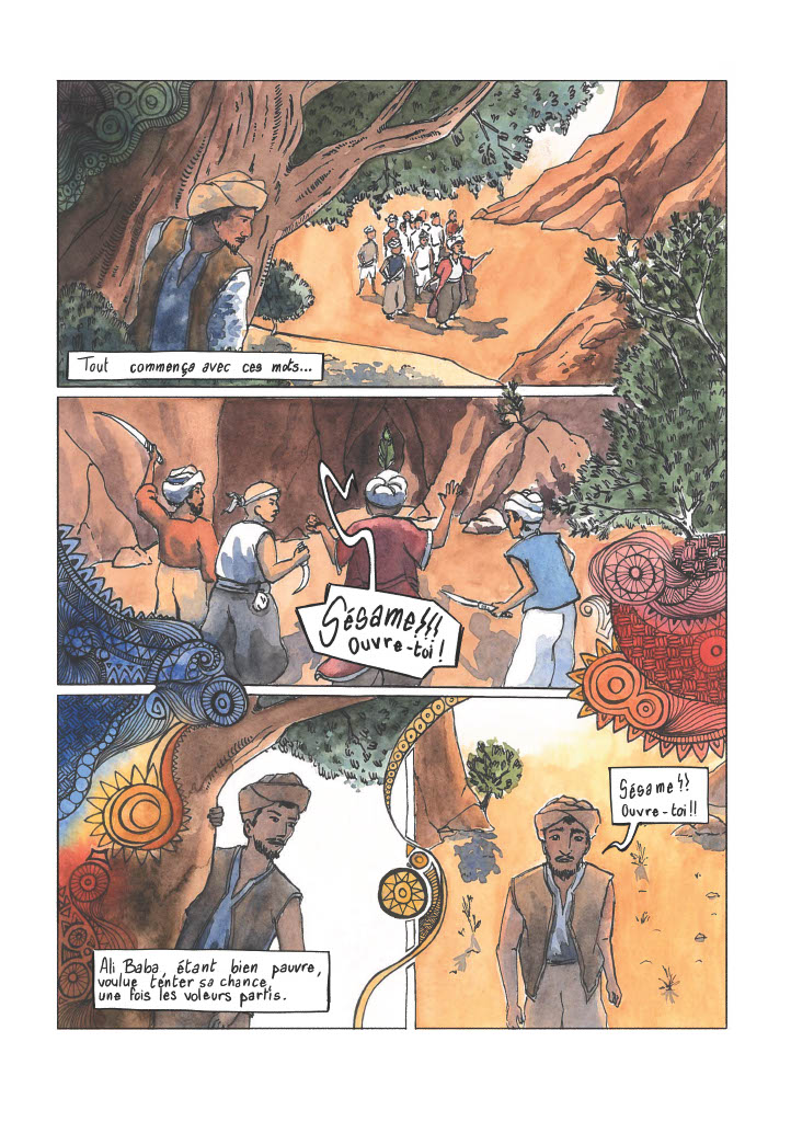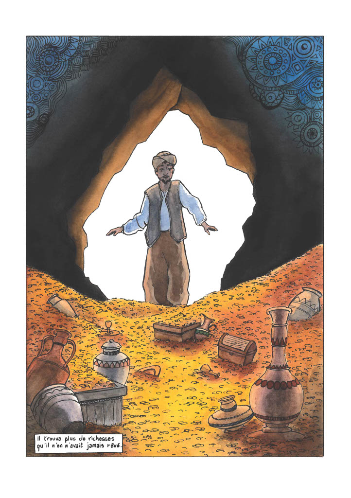 Planches de bd sur la réinterprétation d’un des contes des Milles et nuits : Ali Baba et les 40 voleurs